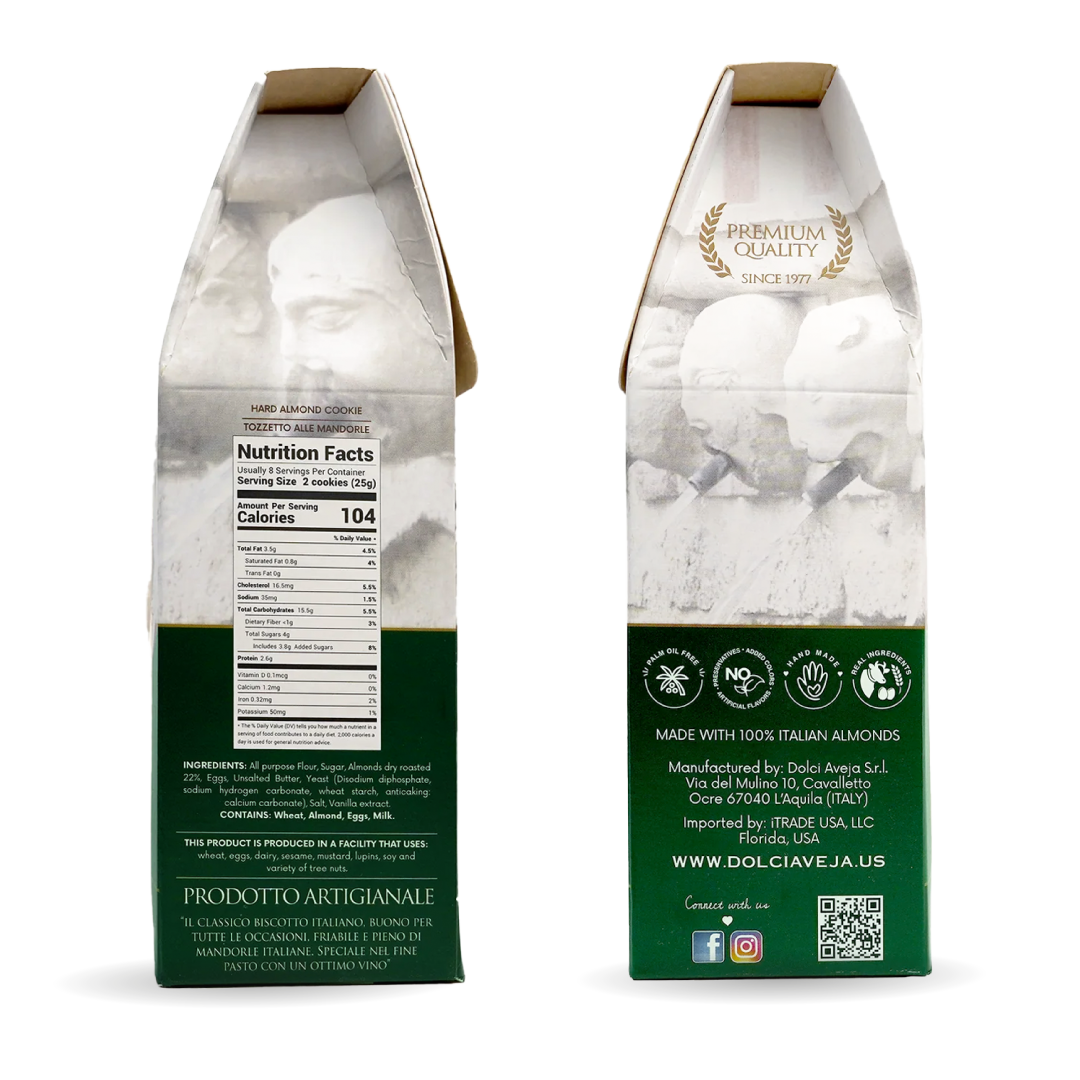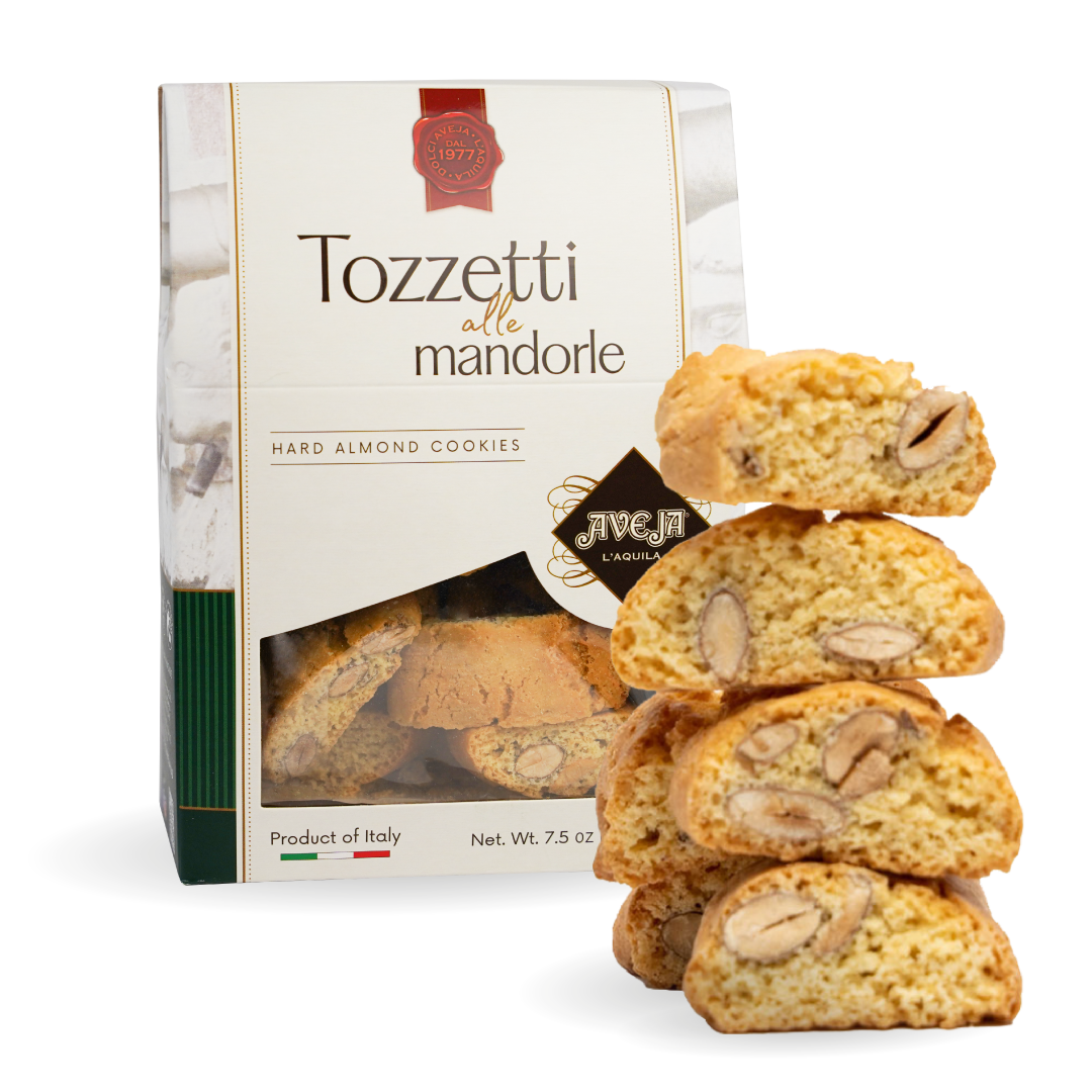Tozzetti, the classic Italian biscuit, are crumbly and packed with Italian almonds, making them perfect for any occasion. Similar to Tuscan cantucci, the word tozzetti is commonly used in Abruzzo, Umbria, and Lazio to describe these delightful biscotti. Crafted with care and tradition, they offer the perfect blend of flavor and crunch, whether enjoyed on their own, dipped in coffee or tea, or paired with your favorite wine or liqueur.